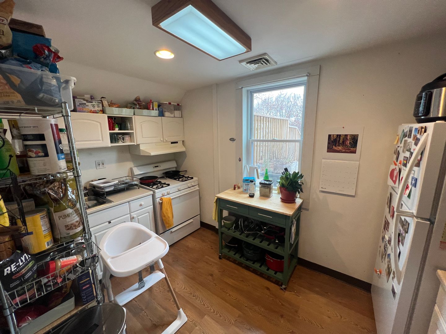 The unit features a functional galley kitchen and a comfortable layout filled with natural light. Enjoy the convenience of in-unit laundry and efficient gas heat.