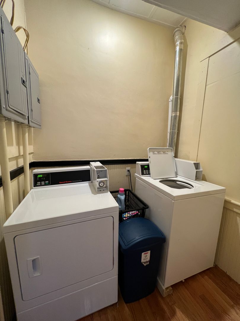 Coin-op laundry in back hallway.