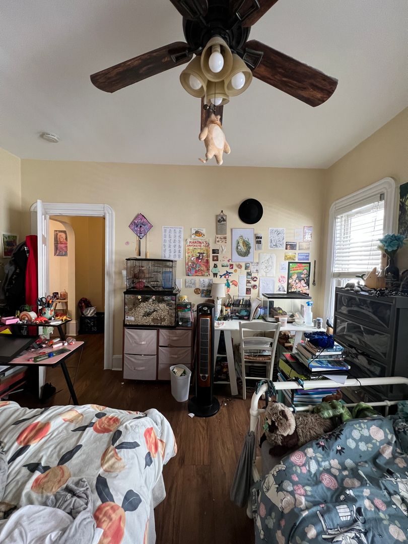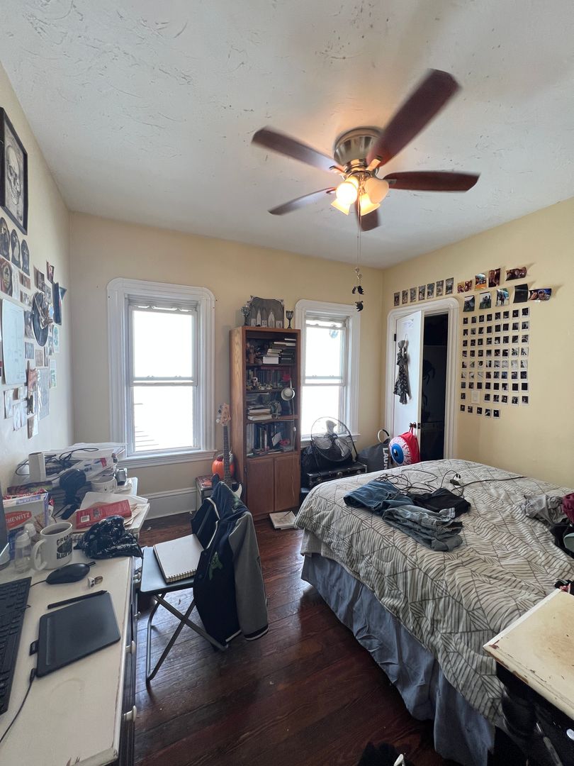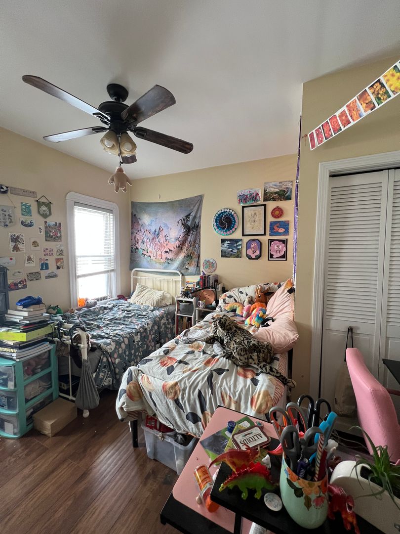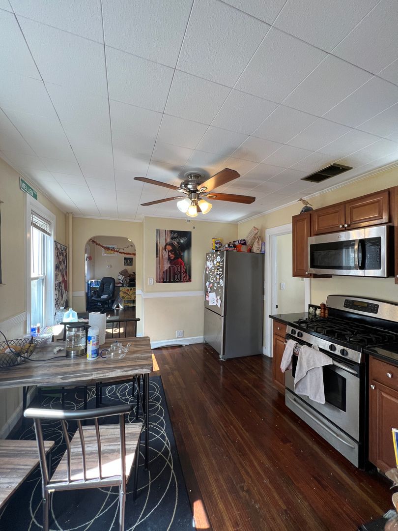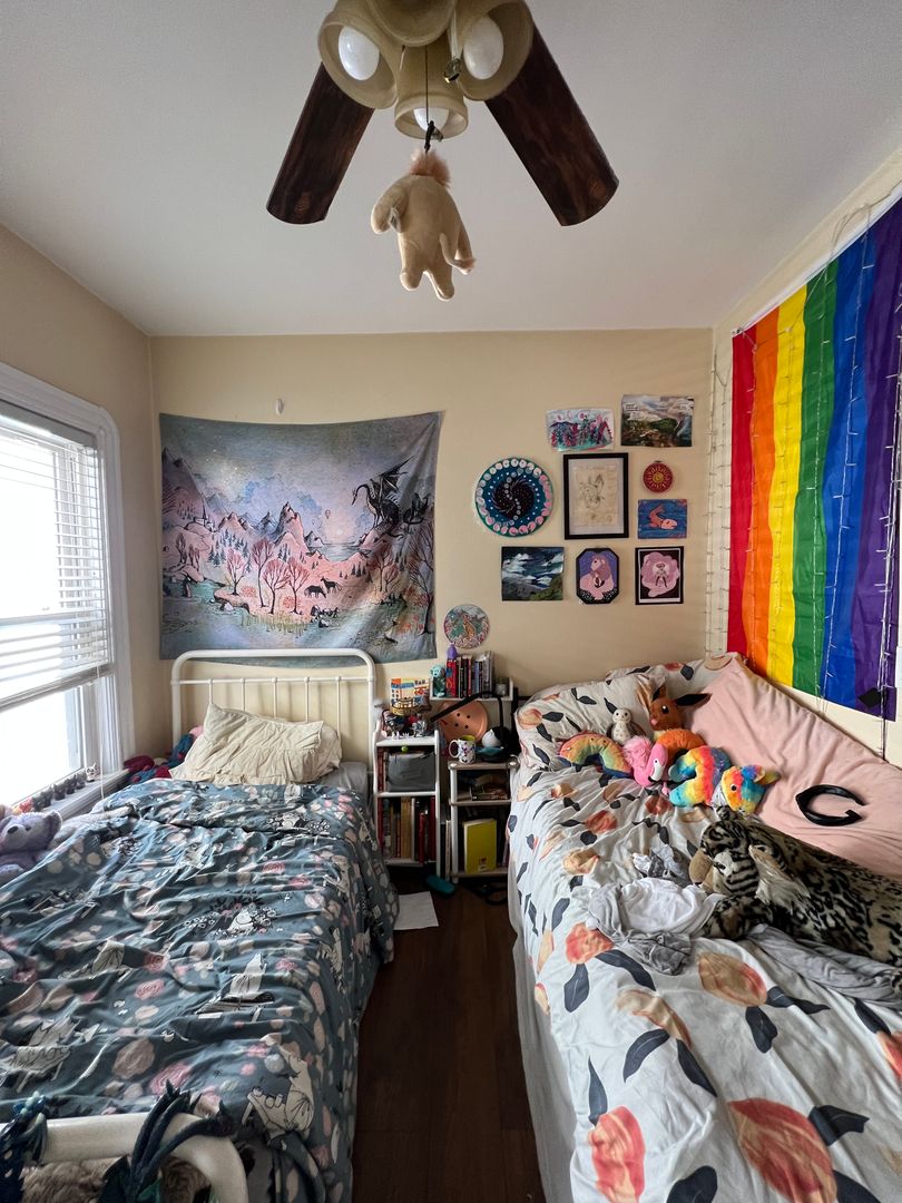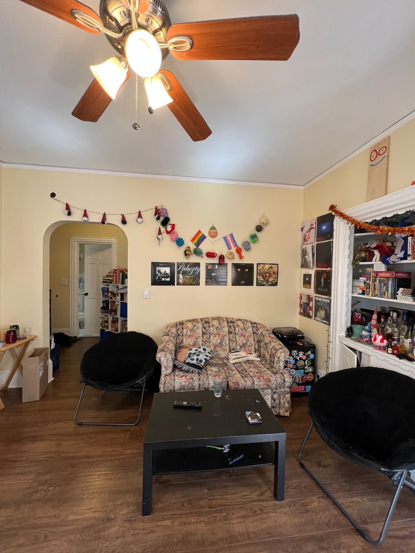 The unit features a modern eat-in kitchen and a separate living room, providing comfortable, defined spaces for everyday living. Hardwood floors run throughout, and the great-sized bedrooms offer flexibility for roommates or work-from-home setups.