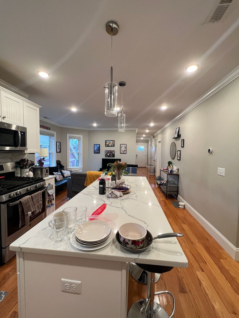 Located in Davis Square, this 4-bedroom, 2-bath third-floor right-side apartment offers high-end finishes, modern amenities, and a prime location.